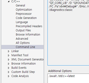 Do C++17을 지원하도록 각 프로젝트의 속성에서 아래와 같이 옵션을 추가하라.