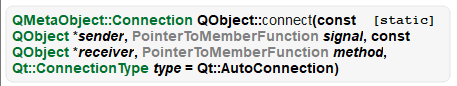 자 이제 좀더 자세히 이게 뭐하는 것인지 살펴보자. 이처럼 기능이 작동되는 것을 보면 C++ 개발자라면 함수 포인터를 이용한 Callback 함수랑 뭐가 다른거지 라는 생각이 들겠지만 마지막 파라미터인 ConnectionType을 보면 보다 진보된 형태의 함수 포인터를 관리해준다고 느낄 수 있다.