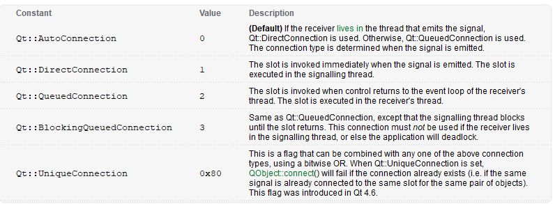 즉 콜백함수와 같이 즉시 실행되는 것만이 아니라 상황에 따라 유연하게 queue에 넣어 slot 함수의 작동을 제어할 수 있다. 또한 connect함수에 대응되는 disconnect함수도 제공하여 연결을 끊을 수도 있다.