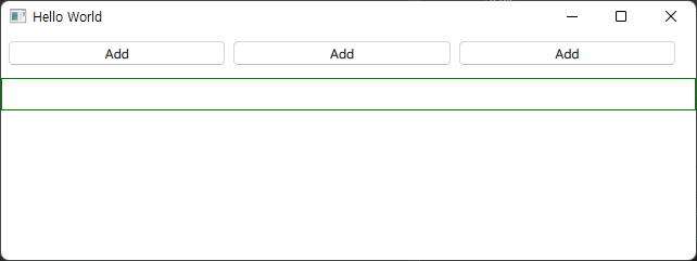그럼 ListView의 기본적인 디자인은 끝난는가? 아니다. 지금은 리스트가 3개만 가지고 있다. 실제 프로그램들은 수백, 수천개를 가지고 있으니 테스트를 위한 ListModel의 갯수를 10개로 늘리고 창높이를 조절해 보자. 이렇게 한뒤 실행해도 ListView에서 기본 제공하는 기능으로 마우스 휠로 데이터 행을 이동해볼 수는 있다.
