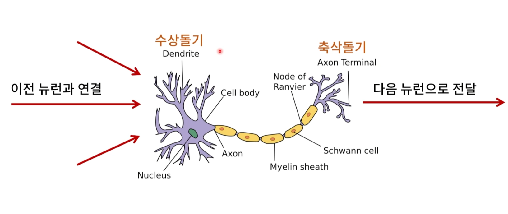 인간에게는 아래 그림과 같은 뉴런이 860억개가 있고 수상돌기를 통해 연결된 전체 갯수는 100조개라고 한다. 아무리 컴퓨터 성능이 좋아져도 당분간은 Hardware가 이정도 수준까지는 오르기는 어려워 보인다. 어쨋건 이런 뉴런을 흉내내고 다양한 알고리즘이 추가되어 현재 AI는 딥러닝으로 부흥기를 맞고 있다. 여기 저기서 딥러닝 해봤다고 하고 사람도 많이 뽑는다.